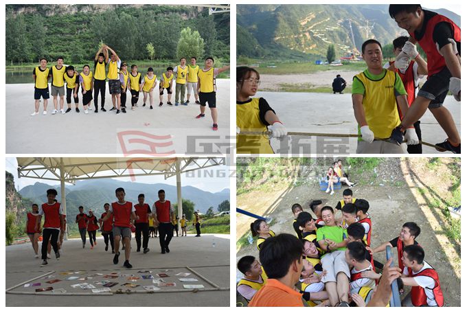 我們公司一行70人乘車來到兵者拓展位于北京十渡的拓展訓練基地,參加為期3天的拓展訓練。首先,拓展教練將我們所有人分了5個隊,各隊在規定的時間內,給所在的隊命名、設計:隊徽、隊訓、隊歌,我們是“風帆隊”、隊訓是“乘風破浪、勇往直前”, 隊訓伴隨和激勵著我們參加了所有的拓展訓練項目,項目有:團隊破冰、穿越電網、信任背摔、感恩的心(生命之旅)、高空抓杠、七巧板、孤島營救、畢業墻(海難逃生),每個活動項目都有各自的特點和含義,使我受益匪淺,感受很多,達到了“提升自我、熔煉團隊”的預期目的。